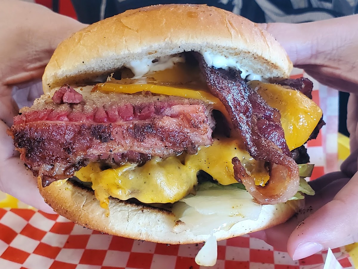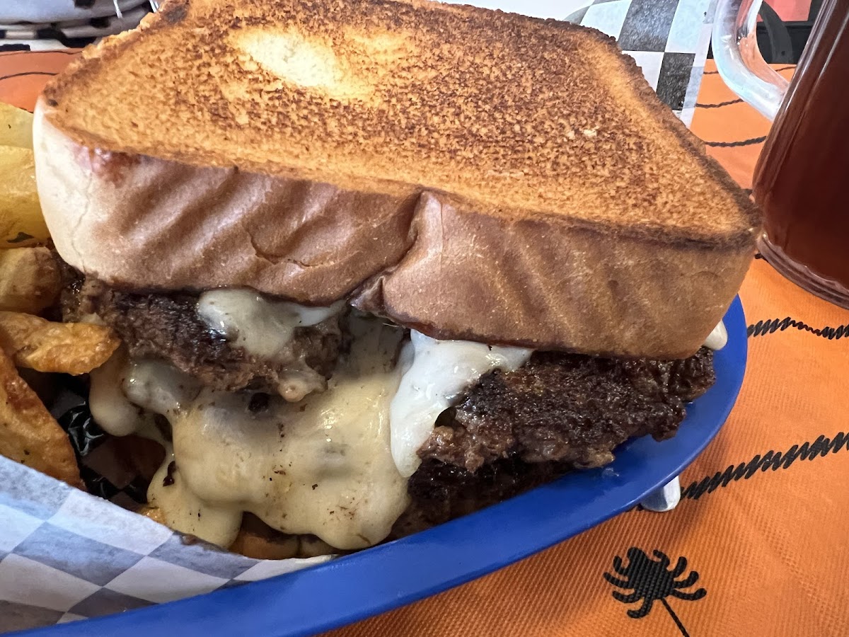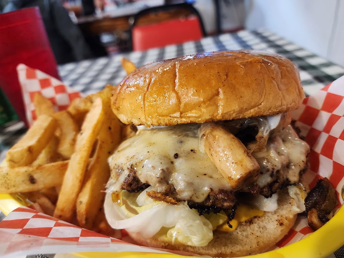 A small hole in the wall joint for some burgers and fries. There are maybe 5 tables indoors. The ones outside had no shade, so that wasn't an option. The service was fast and friendly. We had the mushroom Swiss, breakfast, and frito pie burgers. Burgers were a nice size and very flavorful. The fries were seasoned perfectly and freshly made. Cheese sticks had a nice pull but didn't take a photo of that.